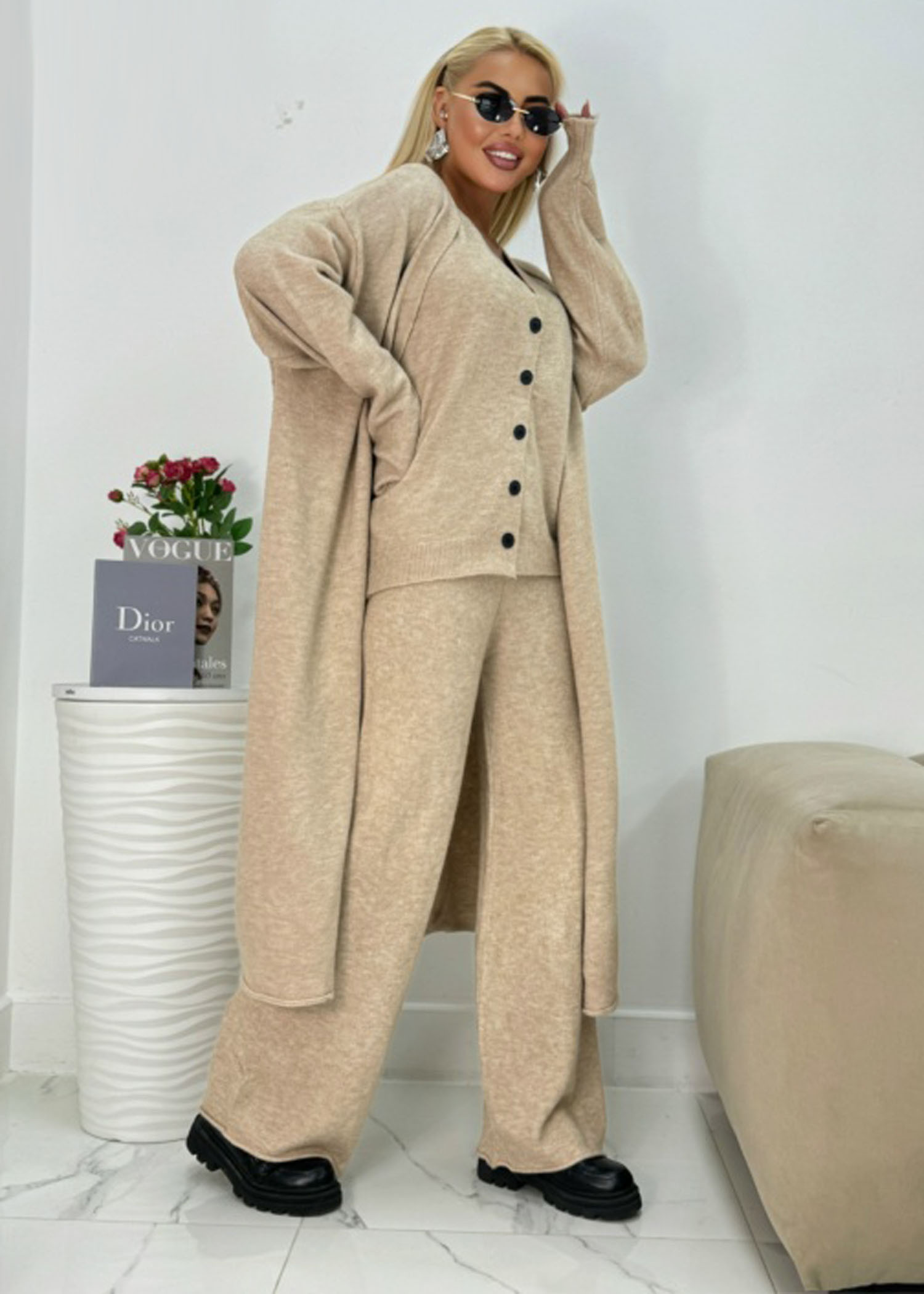 - Материал: 50% хлопок, 25% шерсть, 15% кашемир, 10% эластан