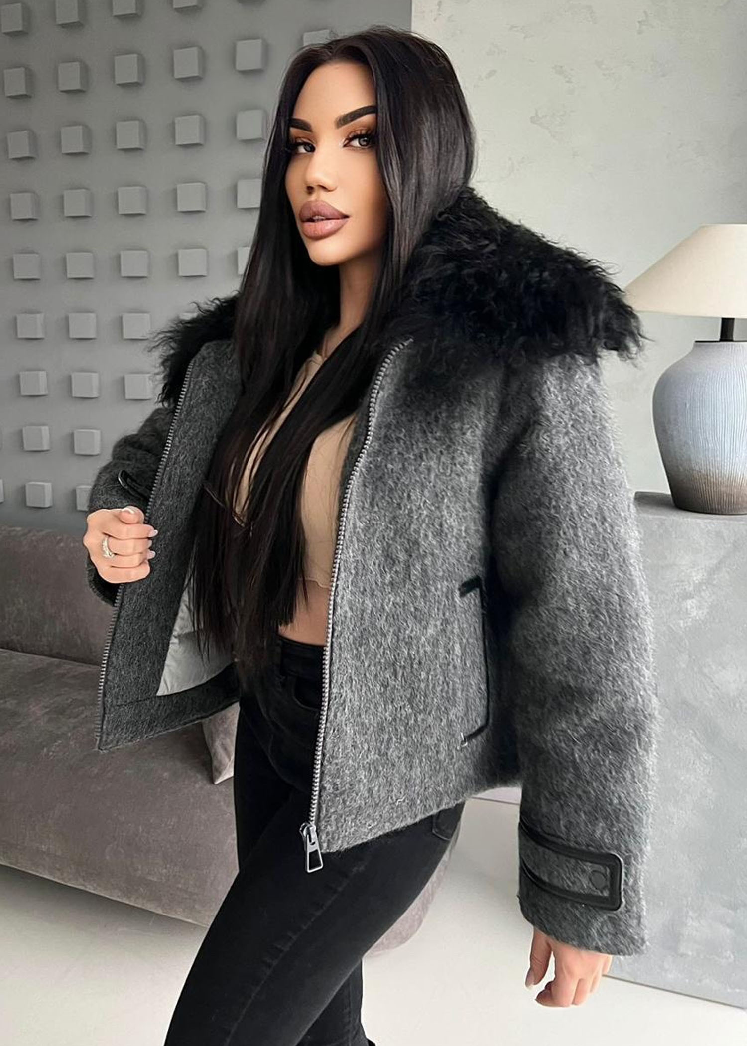 Куртка с натуральным мехом, наполнитель пух. Премиум качество