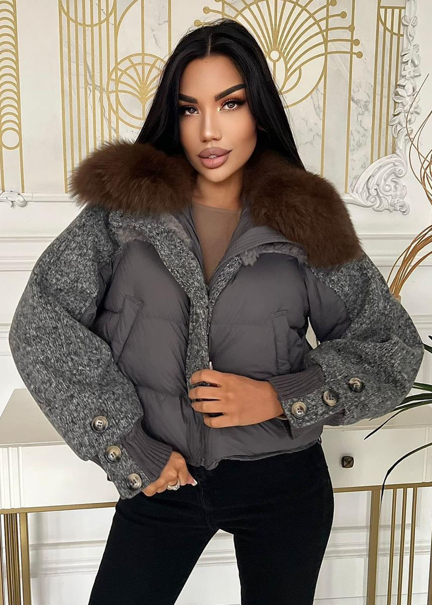 Куртка с натуральным мехом, наполнитель пух. Премиум качество